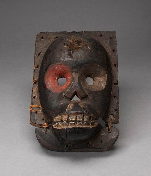 This is a mask made by Myōchin Muneakira in the early 18th century. It’s a formidable piece, forged from iron, during the Edo period in Japan, a time marked by relative peace and the flourishing of artisan traditions. The mask presents a fierce visage. The exaggerated features are those of a warrior, designed to instill fear in enemies while protecting the wearer’s face in battle. The Myōchin family were renowned for their craftsmanship, and the mask reflects not only technical skill but also the complex social hierarchy of the time. Armor, like this mask, served as a status symbol, signifying the wearer’s position within the samurai class. Consider the emotional weight of such an object. On one hand it’s a practical piece of equipment. On the other, it speaks to themes of power, protection, and the performance of masculinity within a rigid social structure. The mask transforms the wearer, allowing them to embody strength and authority on the battlefield. It’s a potent reminder of the human desire to shape identity and project an image of invincibility.
