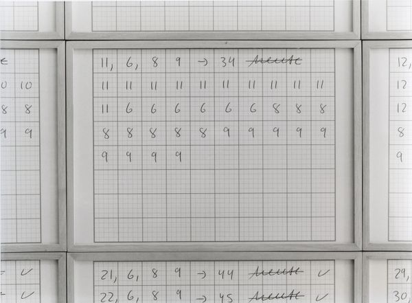 Curator: This work by Jack Gould, simply titled "Untitled (scientific chart on wall at research facility)," presents us with a fascinating grid. It looks almost like a strange color-coded periodic table. Editor: Yes, the material reality of this piece strikes me first—it feels very utilitarian. The chart itself, the way it's made, the suggestion of its institutional context—all point to a very specific kind of labor. Curator: And that labor, I think, is deeply entwined with systems of knowledge production. Consider the implications of classifying and organizing in this way. Who gets to define these categories? What power dynamics are at play within this research facility? Editor: Absolutely. I'm curious about the chart's creation—the paint, the stencil, the labor involved. It speaks to the material conditions of scientific work, often obscured by the veneer of pure intellectual pursuit. Curator: Precisely. It reveals how even seemingly objective fields are shaped by subjective choices and social hierarchies. Editor: It makes you think about how science is also a material process, just like art. Curator: A vital point! This piece challenges us to consider the unseen hands that shape our understanding of the world. Editor: It makes me want to research the place where this chart hung!