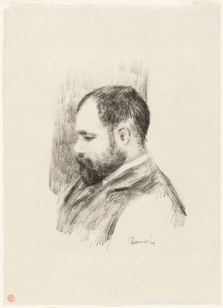 Editor: Here we have Pierre-Auguste Renoir's portrait of Ambroise Vollard. It looks like a pencil or charcoal drawing, and it feels very intimate. What stands out to you about the visual composition? Curator: Notice the emphasis on line and form. Renoir uses a delicate network of lines to define Vollard's features, creating a sense of volume and depth. The subtle gradations of tone, achieved through careful layering, suggest a mastery of technique. The composition's effectiveness lies in its economy; Renoir conveys essential details with minimal means. Editor: I see what you mean about the layering, building up the shading. I hadn't focused on the technique itself so much. Thanks! Curator: My pleasure. Considering the artist's intent and method encourages us to view the artwork as more than a mere representation, but rather as a study of form.