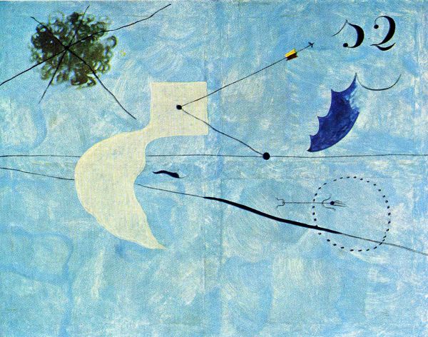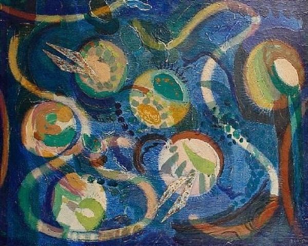 Tihamer Gyarmathy made this painting, "The Depth of Sea," with a real feel for the magic of process. Look how he’s built up the layers of blues and greens, allowing the white lines to sing across the surface. It's as if he’s conjuring the ocean from thin air. The painting feels like a dream, doesn’t it? The texture is smooth and almost translucent. It feels as if the colours could slip right off the canvas. Those thin white lines create a sense of depth and mystery, they remind me of fishing lines. There’s one line that swoops up from the bottom, arcing all the way around like a celestial fishing rod. It really pulls the whole composition together. This piece reminds me a little of Joan Miró, with his playful use of shapes and symbols. Art, like the sea, is a constant conversation, a back-and-forth between artists across time. Gyarmathy invites us to dive in, to explore the depths of our own imaginations.