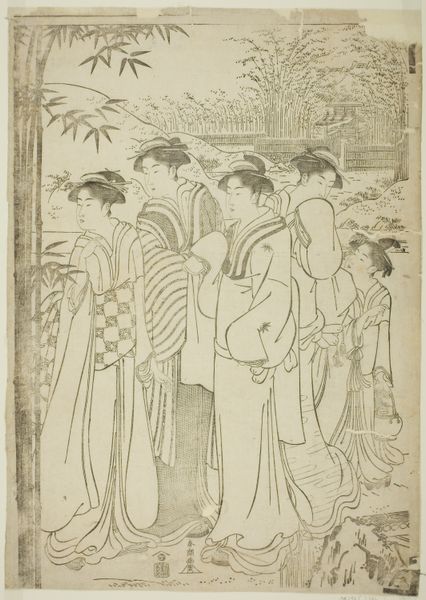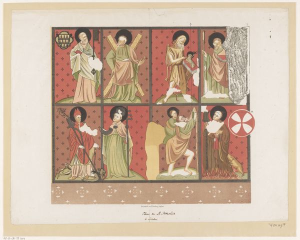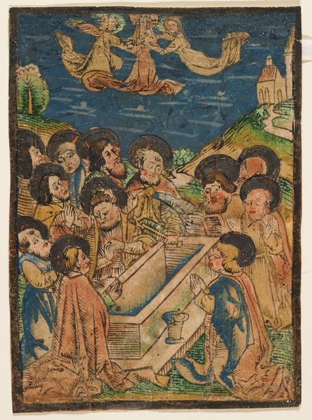 This small, anonymous print presents a community of Hermit Saints, rendered with simple lines on paper. The key to its creation is the woodcut technique. This process involves carving an image into a block of wood, inking the surface, and pressing it onto paper. The material qualities here are straightforward: the rough texture of the wood, the absorbent paper, and the thin application of color, likely added by hand after the print was made. The lines have a direct, graphic quality, mirroring the labor involved in the carving. This wasn’t high-end engraving, but a more accessible form of image production. Prints like these had a particular social function. They offered visual representations of religious figures to a wider audience, in a portable, affordable format. It democratized access to religious iconography, bringing it into everyday life, beyond the walls of churches or wealthy patrons' collections. In essence, it was a form of mass production, tailored to the spiritual needs of the masses.