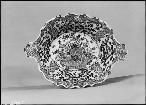 Jean-Baptiste Guillibaud created this plateau for a tureen with tin-glazed earthenware, likely in the 18th century. The dominant motif is a stylized tree, bursting with flowers and leaves, with a bird perched above—symbols deeply rooted in cultural memory. The tree, a universal symbol of life, growth, and connection between heaven and earth, appears across cultures from the Tree of Life in ancient Mesopotamia to the sacred trees of various mythologies. Similarly, birds have long been associated with the soul, freedom, and transcendence. Consider the phoenix, a symbol of rebirth, or the dove, representing peace. Here, the combination of the tree and bird evokes a longing for harmony and spiritual elevation. This composition invites us to contemplate the cyclical nature of life. How these symbols resurface, evolve, and take on new meanings in different historical contexts is a testament to their enduring power.