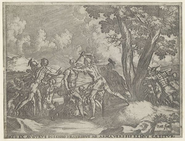 Curator: Before us, we have Cornelis Galle I's "The Flight into Egypt," likely created sometime between 1586 and 1650. This engraving captures a significant moment from the New Testament. Editor: It's immediately striking how the figures are lit, isn't it? A dramatic contrast of light and shadow against that vast landscape... There’s real intensity there. Curator: Absolutely. Galle’s rendering uses the landscape not just as background but to evoke emotional qualities, it serves as a reflector of displacement, if you will. Think about it, this image symbolizes so many lived realities experienced by many—families being torn apart and fleeing persecution to seek a new existence somewhere else. The looming, dark aspects speak of the anxieties permeating such disruption. Editor: I agree about that displacement, but it's not just about Galle channeling feelings, but it’s equally about the technical production here; this Baroque period was a watershed era for engravings and printing; the way the ink hits the page allows for great range. Looking at the textures alone - Joseph's strong leg muscles in the forefront pulling, in juxtaposition with the aged lines of Joseph is quite compelling in its depiction of the generational expectations placed upon the family. Curator: Interesting you point out those visual-material dichotomies between young and old, that echoes perfectly how faith often acts as a guide amid great turbulence and generational change. Here is a vulnerable mother and child escaping danger to start afresh on their path—a recurring motif of maternal survival amid the darkest eras. Editor: And you can see the material effect of their displacement: how their cloaks weigh and shield them against the elements. It’s compelling how it makes what’s unseen palpable. What do you make of the decision to highlight this nocturnal setting? It's intriguing that that the holy family have divine support. Curator: Presenting the journey in darkness reinforces the urgency and fear involved. But within that darkness, the light surrounding Mary and Jesus—that divine presence, as you said—it's not only comforting but also reinforces their divine mandate, in defying these oppressive conditions. Editor: This print really showcases how something produced mechanically still possesses a striking sensitivity, and reveals that there are a lot more stories to unearth than you would think at first glance. Curator: Indeed; seeing this print allows for us to examine historical narratives of persecution—while also remembering the continuous struggles of refugees even today. It becomes a space where art, history, and contemporary concerns can intersect powerfully.