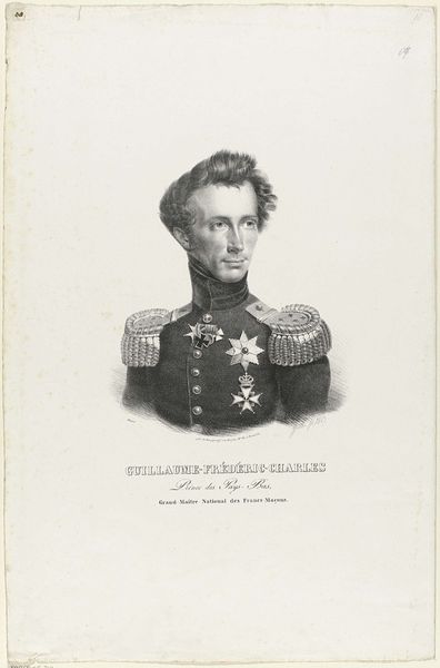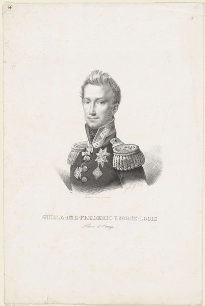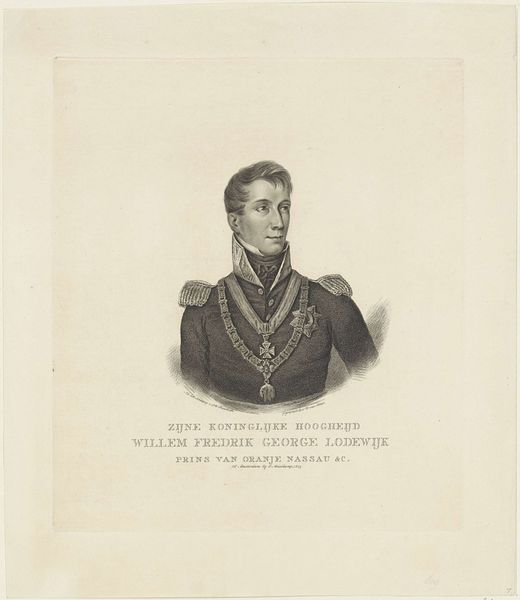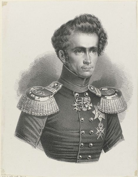 Curator: The artwork before us is a portrait of Frederik, Prince of the Netherlands, crafted with pencil between 1816 and 1879 by Henricus Leonardus van den Houten. Editor: It has a delicate quality, doesn't it? The tonal gradations are very subtle, particularly around the face. It creates a pensive mood, a kind of reserved nobility. Curator: That reserved quality speaks volumes, given the Prince’s role. Born into power, his life was inherently political. These images, especially during that period, served to reinforce social hierarchies and legitimize authority. Editor: Absolutely. And it’s achieved partly through form. Notice how the tight hatching defines the contours of his face, leading our eye up to the carefully rendered details of the uniform. There's a meticulous balance between the sharpness of the lines in the military garb and the softness of the face. Curator: I think the rigidity in his posture, contrasted with the slight almost hesitant look in his eyes, adds layers. It invites us to consider the constraints placed on individuals, especially within systems of inherited power and privilege, doesn’t it? This piece offers commentary, intended or not, on the person beneath the uniform. Editor: An intriguing point. The texture achieved with graphite creates a surprisingly three-dimensional effect for such a seemingly simple medium. It’s not just about capturing likeness, but texture, the very *feel* of status and authority. Curator: For me, it underscores the complex relationship between representation and reality. It asks, “Whose stories get told and how?” “What performative acts of self are concealed beneath formal appearances?” The portrait reminds us that historical figures weren't monolithic. They operated within socio-political landscapes. Editor: Indeed. Looking closely, you see Van den Houten expertly manipulates light and shadow to emphasize certain features, minimizing others, carefully constructing a visual narrative that reinforces a particular ideal of leadership, of royal bearing. Curator: Ultimately, what began as a straightforward portrait evolves into a window onto a network of intersecting ideas regarding representation, power, and identity in 19th century Netherlands. Editor: I agree; the piece reminds us how close analysis of structure allows for expanded understanding.