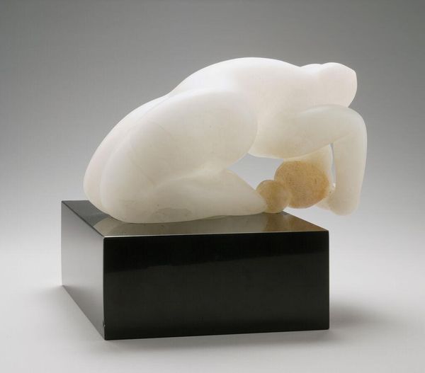 Curator: Barbara Hepworth’s Oval Sculpture No. 2 at the Tate is a marvel—it’s like she captured pure light and form. Editor: The first thing I see is the work itself. It is plaster, isn’t it? I wonder what was it like to handle that material, the labor of carving, smoothing. Curator: The hollows remind me of looking out to sea from a cave, a sort of womb with a view. Editor: Yes, and it's resting on a wooden base. The contrast suggests a tension between organic process and geometric form, the tension inherent in Hepworth’s practice. Curator: It’s like she’s inviting us to step inside, to contemplate the space within and without. It is a beautiful meditation. Editor: Indeed, quite beautiful; it makes me consider the production of art beyond mere aesthetics.