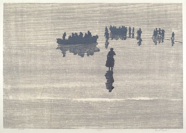 Devin Leonardi made this gray and black toned photograph called Broadwater, but the date is not known, and it feels like it could have been done at any point in the last hundred years. There's a crowd of figures standing around near what looks like a canal or a riverbank, and the reflections are so powerful, it becomes difficult to understand what is surface and what is depth. The tones range from pale gray to almost black, and the textures in the print have a lovely granular feel, like early photography. This work really highlights the materiality of traditional photographic processes, and allows the viewer to become aware of the range and depth that can be achieved with monochrome imagery. Look how the surface of the water is suggested with delicate strokes of gray, that look like gentle ripples. Leonardi's visual language has echoes of Walker Evans's social documentary, but he also has a strong awareness of abstraction. The final image walks a fine line between representation and pure form.
