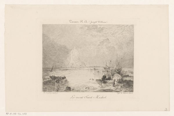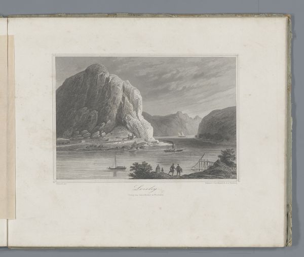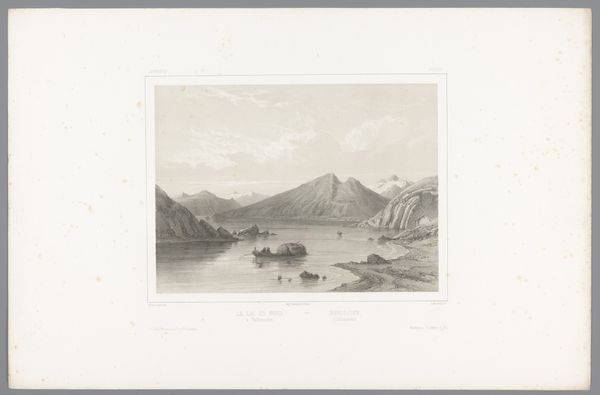 Curator: Lars Møller’s “Ivigtût”, a lithograph from between 1869 and 1871, presents a somewhat austere landscape. What strikes you immediately? Editor: There’s a stillness, almost a melancholic silence, despite the presence of a ship and buildings. The grayscale and precise lines evoke a sense of cold remoteness. Curator: Indeed. The image depicts the cryolite mine in Ivigtût, Greenland. This town became significant for its rich cryolite deposits, a crucial component for aluminum production. Look closely at how Møller captured this location; it provides visual insights into the socio-economic dynamics of the 19th century and labor, through its depictions of industry embedded within the environment. Editor: And yet, I can't shake the impression that the landscape itself is the main subject. The mountain range is stark and majestic; the ship provides a focal point through linear perspective. These compositional choices seem to emphasize humanity’s small place against the backdrop of a seemingly infinite Nature. Curator: While Møller worked from photographs to create this image, he undeniably shaped the viewer's perception of Greenland through his lithographic process. Consider the manual labor involved in printmaking at this time – the physical work in creating such detailed prints that would have made this environment and labor accessible to larger audiences. The image serves to convey this sense of progress but from a very specific production lens. Editor: True, we must keep in mind the intended viewership. There is the use of monochromaticism, as opposed to color, the medium’s graphic capabilities lend themselves well to documenting details of geographical structure. The shading also seems specifically intended to capture certain qualities of reflected light that provide spatial organization, enhancing this perception of great depth. Curator: To understand its importance fully, you’ve got to look into the specifics of its use and mass production. The medium matters just as much as the content itself; this print speaks of a world being consumed as much as beheld. Editor: Fair enough. Analyzing the technical aspects provides critical insight into the era's ethos that may not always be transparent through immediate stylistic evaluation. Thanks! Curator: A productive analysis of material conditions, thank you!