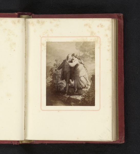 Editor: Here we have an 1875 photograph, a gelatin silver print of a painting by Edwin Henry Landseer. It shows a dog inside a room, and it almost looks like the dog is waiting for someone. What stands out to you when you look at this? Curator: The first thing I notice is how the photographer reproduced a painting of a dog within an interior – a symbol-laden space. Landseer was celebrated for his animal paintings, particularly his dogs. What do dogs represent? Faithfulness, companionship, vigilance. Here, it appears to guard what may be a workplace or a writing studio; we get a glimpse of an inkwell behind it. Editor: So the setting is part of the message? Curator: Precisely. Consider the placement, the choice of pose: patient, watchful. There’s a sense of fidelity to duty imbued in the dog’s image. Look at its attentive posture. What societal values do you think Landseer, and by extension the photographer, were trying to uphold? Editor: Perhaps the value of hard work, of guardianship… and the bond between humans and animals? It almost seems like an allegory. Curator: Indeed. These depictions weren't just about aesthetics; they served a deeper cultural purpose. Animals reflected the human condition and idealized societal norms. I wonder about the original painting - how its meanings may have evolved through its photographic reproduction? Editor: That’s something I hadn’t considered - the layers of interpretation. Thanks! Curator: My pleasure! Considering how visual symbols speak to cultural memory can deepen our understanding of any work.