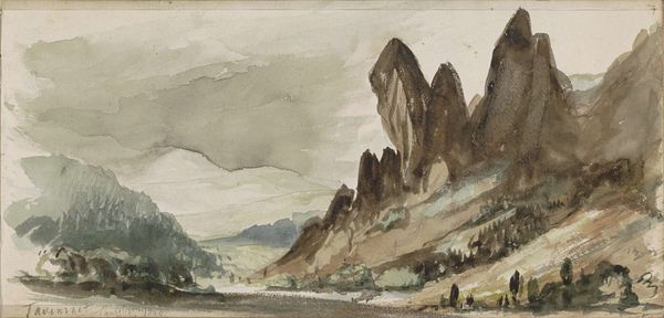 Editor: This painting, “Mountainous Landscape” by Tobias Verhaecht, seems to pull me in. It's so detailed, with this almost dreamlike fortress perched atop a hill. What do you see in this piece that helps us understand its place in art history? Curator: What immediately strikes me is how this landscape reflects the socio-political anxieties of its time. Though undated, it speaks to the era of fortified cities and the power structures inherent in the relationship between landscape and dominion. Note how the castle is both a beacon and a potential cage. What is being protected, and who is doing the protecting? Editor: That's interesting; I hadn’t considered it that way. The small figures almost feel trapped by the overwhelming landscape, and the fortress looms over them, dominating the space. Curator: Precisely! The 'picturesque' quality you mentioned hints at the idealized vision of a controlled and ordered world, yet the raw, untamed nature surrounding it constantly challenges that order. This interplay can be viewed as a microcosm of society's struggles to impose its will on a volatile world. Consider how this image might have functioned as a symbol of power for its commissioner, and who likely had access to it? Editor: So, understanding who the audience was is crucial? It feels like propaganda now that you mention it, although I originally perceived it as simple landscape art. Curator: Precisely! Analyzing the historical reception and the socio-economic status linked to its imagery reveals that such idealized landscapes served to reinforce the authority of the ruling classes. And remember, 'realism' during this era was heavily filtered through the lens of those in power. Editor: This really broadens my view. I now see it less as a scenic view and more as a carefully constructed message about control. Thanks for illuminating its deeper social meanings. Curator: My pleasure! These paintings provide an important link between social ambition and aesthetic preference in the Northern Renaissance, making even 'simple' landscapes rich grounds for investigating cultural biases.