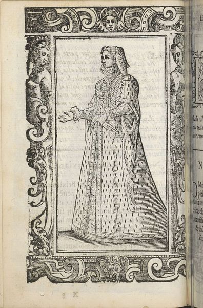 This is an image titled 'Donzella di Brabantia' by Christoph Krieger, created using a printmaking technique such as woodcut or engraving. The visible lines, cuts, and marks are not just representational, they are the very essence of the image itself. The linear quality emphasizes the details of the woman's dress and the overall composition. Consider the labor involved, each line painstakingly etched or carved to create the image. The cross-hatching creates shading and depth, giving volume to the figure and her garments. Printmaking democratized image production; this was about making multiples, catering to a market. These images were intended to be circulated and consumed. The relative ease of replication meant that ideas and images could spread quickly, influencing fashion, design, and cultural tastes. Looking at this print invites us to consider not only the image itself, but also the processes of its making and distribution, questioning traditional hierarchies of artistic value.