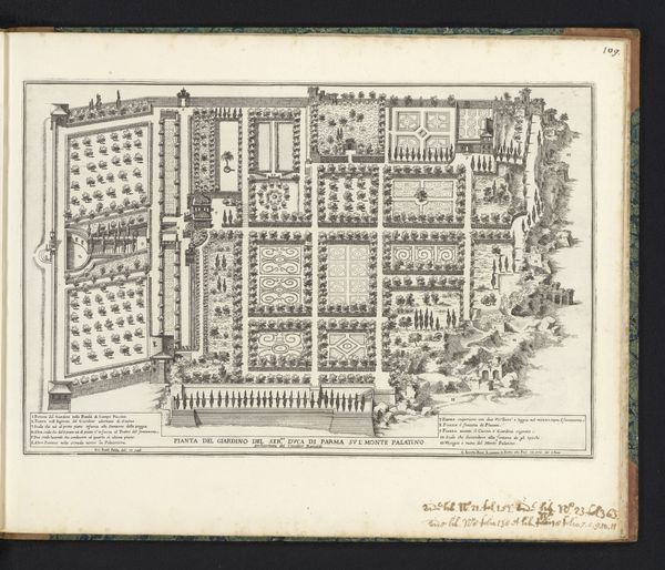 Giovanni Battista Falda made this print of the ground plan of the garden at Villa Doria Pamphilj in Rome sometime in the late 17th century. The print gives us an insight into the spatial and social order of the Roman elite during the Baroque period. The meticulously planned garden is a testament to the family's wealth and power. Note the visual codes of the rigid geometry of the planting, the fountains, and the hidden garden structures. These would have been understood as a kind of theater for social display, with the garden serving as a backdrop for elaborate entertainments and political machinations. The Villa was designed by Alessandro Algardi and Giovanni Francesco Grimaldi. The Villa Doria Pamphilj itself was a site of cultural production, hosting artists, writers, and musicians, solidifying the family's status as patrons of the arts. By studying estate plans, visitor books, and other historical documents, we can uncover the complex interplay of art, power, and social life in seventeenth-century Rome. Ultimately, this print serves as a reminder that art is always embedded in a specific social and institutional context, shaping its creation and reception.