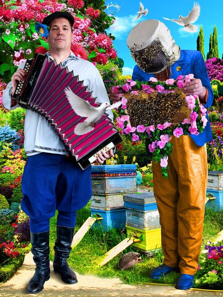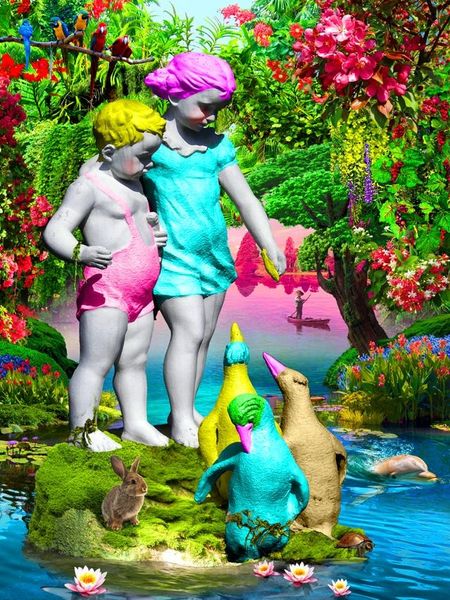 Babak-Matveev’s *Wedding Gypsies* is a digital print that somehow marries the strange and the familiar in one brightly coloured image. The piece has a kind of “more is more” mentality – the composition is packed with details and the colour palette is maximalist to say the least. I love the way it embraces the unexpected, like the cobra rising up in the foreground, or the way the fake tropical backdrop clashes with the ramshackle attire of the happy couple. It’s the kind of image that shouldn’t work, but somehow does. The overall effect is like a folk art fever dream. It reminds me a little of some of Red Grooms’s installations, in that it creates its own hyper-real world which is both humorous and kind of unsettling at the same time. It embraces a DIY aesthetic but on a grand scale, creating its own unique and unforgettable vision. It reminds me that art can be anything you want it to be, as long as you're willing to take a few risks.
