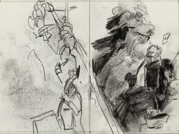Isaac Israels made this drawing called ‘Straatfeest’ using sketchy charcoal lines. It’s like he was trying to catch the feeling of the street party rather than making a perfect picture. The charcoal is smudgy and thick in places, especially where the crowd is bunched together. You can almost feel the energy and the bodies pushing around. Then, in the background, the lines are lighter and fade away, creating a sense of space and distance. It's like a map of the artist’s attention. See how the marks cluster and swirl to suggest depth and movement? The eye jumps to one area and then another, never settling. This kind of drawing reminds me of Daumier, who also used quick lines to capture the hustle and bustle of city life. It tells us that art doesn’t always need to be precise. Sometimes, it’s more interesting when it's messy and full of life.