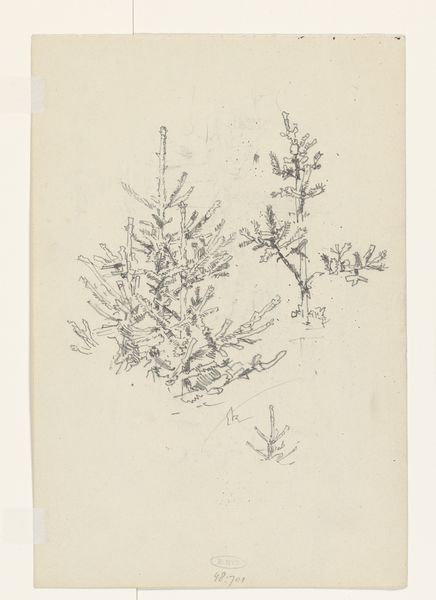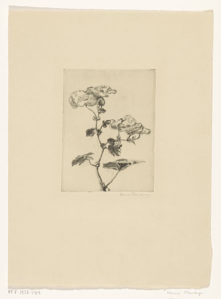 This 'Distelstudie', or Thistle Study, was etched by Octavia Cornelia Suzanna Hofstede de Groot, at an unknown date. Looking at this small print, I see how drawing, like gardening, can be an exercise in close observation. There's a tactile quality to the etched line, a kind of hesitant delicacy. You can see this in the way the leaves bristle, as if the burrs might prick your finger if you reached out to touch them. The lines aren’t mechanically precise, but rather wavering and responsive, as if feeling their way around the form. Consider the way the lines gather and disperse, creating a sense of depth and volume. It reminds me of the way Agnes Martin would create subtle tonal variations in her grid paintings through slight variations in pressure. Here, the etched line embraces imperfection and uncertainty, allowing for a more organic and expressive representation of the natural world. Like the botanical drawings of Maria Merian, Hofstede de Groot brings her own personality to her subject.