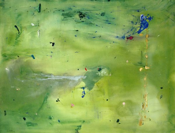 Valentin Khrushch made this painting, Fish, presumably with paint and a brush. The overall palette is subdued, mossy, and watery, with a few bright dabs of white, yellow and blue that catch your eye. It makes me think of the process of painting, or how a painter might consider the layering of colours. Looking closely, I see how the fish are not depicted realistically; they’re more like ghostly impressions, or perhaps memories, suspended in the green space of the painting. There is the ghost of a single vertical line that runs down the painting, suggesting the edge of something, a wall maybe. The surfaces of the fish are marked by these fibrous lines which pull away at the image and give it texture. The work evokes the spirit of artists like Antoni Tàpies, with a similarly earthy palette and a focus on texture and materiality. This painting, like all paintings, is a testament to the endless possibilities of seeing and thinking through art.