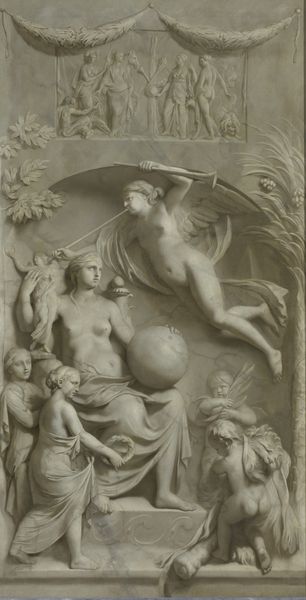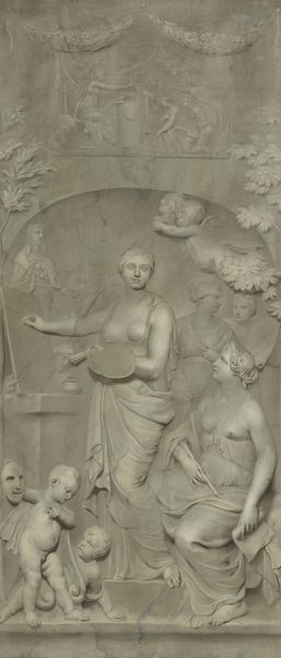 Gerard de Lairesse crafted this intriguing, undated allegory of riches, now held at the Rijksmuseum, employing the visual language of wealth through symbolic figures and objects. We see a woman, likely an allegorical figure, holding grapes and a key. The grapes represent abundance and fertility, a common symbol of wealth in classical art, while the key suggests control over resources or secrets. The putti that surround her reinforce the theme of prosperity and carefree abundance. Notice the cornucopia, overflowing with riches, a motif that stretches back to antiquity, symbolizing inexhaustible bounty. Consider the symbolic weight carried by the snake being hunted in the relief above. In many cultures, snakes are symbols of primal energy, transformation, or even danger. Here, the hunter may represent the necessary vigilance required to protect wealth from those who would exploit it. Like the ouroboros, the snake eating its tail, these symbols and representations are in cyclical progression, constantly resurfacing, evolving, and acquiring new layers of significance in different cultural contexts.