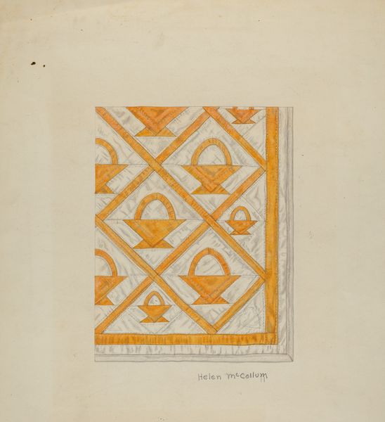Mabel Ritter made this patchwork square, though the exact date of its creation remains unknown. Squares of pink, green, and gold are set on the diagonal against larger expanses of plain paper. The art of quilting and patchwork has long been associated with women's domestic labor, often outside the realms of formal artistic institutions. But the use of geometric forms and patterns could also be considered a form of visual expression in its own right, offering an important outlet for creativity and skill. These skills were passed down within families and communities, and quilting bees were sites of social interaction and exchange. The historian might consider the types of fabrics used, the patterns employed, and the techniques utilized to understand this artwork better. This helps us appreciate the complex social and cultural context in which it was made, and to question traditional boundaries between craft and art.