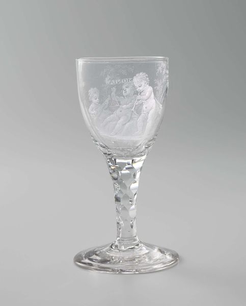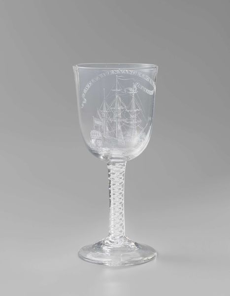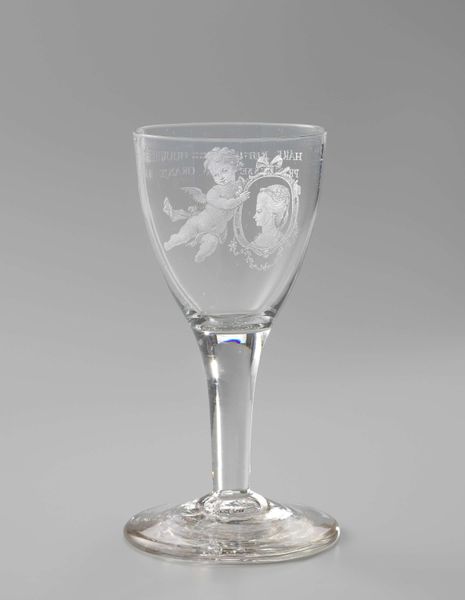 This glass, decorated with a portrait of Willem V, was made anonymously, at an unknown date. It is made of potash glass, a relatively soft material, which allowed the engraver to cut away at the surface, leaving a delicate design in relief. The process probably involved a series of small rotating wheels, fed with abrasive grit – a painstaking method, requiring immense skill. The glassblower who first formed this object would also have been highly trained. These traditions long predate the industrial revolution, yet are very much part of the story of early capitalism. Glass, like ceramics, was one of the first materials to be manufactured at scale and traded across long distances. And while we appreciate the artistry that went into this glass, we should also remember the many hands, seen and unseen, that brought it into being. These objects tell a story of technical ingenuity, yes, but also of labor and commerce.