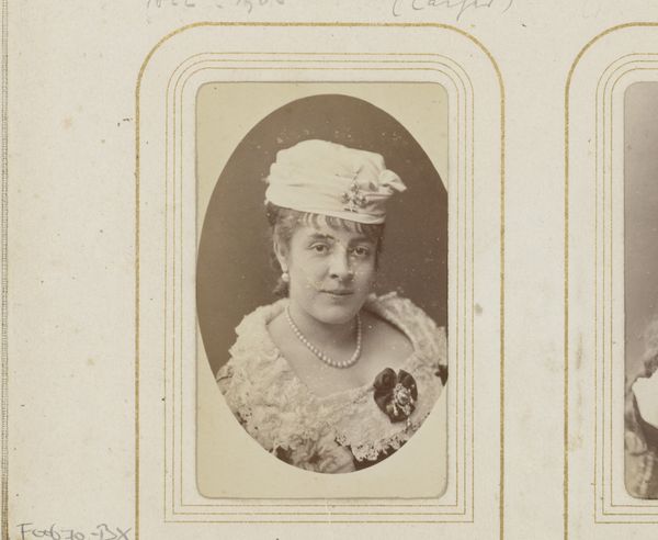 Editor: This is Nadar's "Portret van Anna Judic", a gelatin silver print from between 1880 and 1890, held here at the Rijksmuseum. There’s something so immediate and engaging about her expression. What’s your read on this image? Curator: Ah, Nadar! He had such a gift for capturing the essence of a person. It's like looking through time, isn't it? This photograph is less about flawless beauty and more about… personality. Anna Judic was a celebrated actress, and Nadar seems to have bottled her vivacity. Do you see that playful glint in her eyes? Editor: Definitely! It’s not the stiff, posed portraiture I often associate with the 19th century. Curator: Exactly! Nadar was a master of lighting and composition, but what truly sets him apart is his ability to make his subjects feel comfortable, seen. It’s almost as if he is suggesting that even still a portrait can speak a thousand words, revealing a deeper truth. He did so much with his portraiture that his contemporaries, and now us, just dream of achieving, wouldn't you agree? Editor: I think so. He made a really profound image here, even within the confines of the traditional portrait format of the era. Curator: Indeed. The best art helps you find more art, or maybe more to the point, invites you to become more observant of life and more understanding of others. And that, I think, is what we've gleaned here today! Editor: I completely agree, thank you! I'll definitely keep that in mind as I continue my studies!