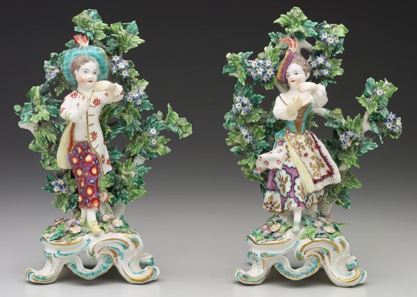 These porcelain figures were made at the Saint-Cloud factory in France, likely in the early 18th century, when the popularity of the Comédie Italienne was at its peak. These actors, with their stylized poses and colorful costumes, would have been instantly recognizable to contemporary audiences. The figures reflect the vogue for theatrical subjects during the reign of Louis XIV, when court entertainments were central to political life. At this time, French porcelain factories like Saint-Cloud sought to capture the luxury market, imitating the forms and decoration of imported Chinese ceramics, but with a distinctly European sensibility. Art historians analyze these figures by consulting theater archives, costume books, and factory records. These resources allow us to understand how the porcelain figures reflect the spectacle of the stage and the economic ambitions of the French decorative arts industry. Studying this intersection offers insight into the social and institutional forces that shaped artistic production.