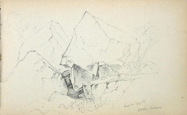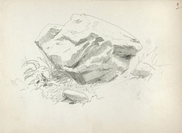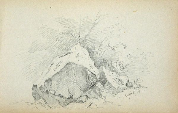 Editor: This is "Rocks; verso: blank page," a pencil drawing by Benjamin Champney. It looks like a quick study of rocks, almost like a geological survey. What can we learn from Champney’s choice of material and subject? Curator: Precisely! Champney’s sketch embodies the 19th-century American interest in natural resources and landscape. Pencil allowed for direct observation and documentation, becoming a tool for both artistic expression and scientific inquiry. Editor: So, the pencil itself is part of the story? Curator: Absolutely. Consider the availability and affordability of graphite at the time. It democratized art-making while subtly reinforcing the cultural importance of surveying and owning land. Editor: I see. I hadn't thought about the economic side of art materials. Curator: Examining artistic choices as material decisions opens up new ways to understand cultural values.