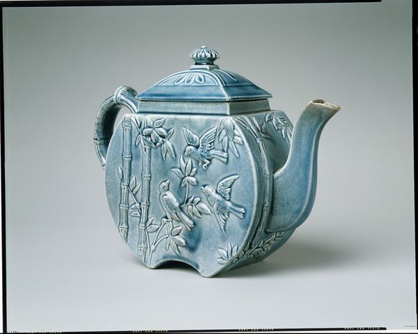 This teapot was made by Wedgwood around 1759, crafted from Jasperware, a type of stoneware famous for its matte, unglazed finish. The body of the teapot has been molded, probably using plaster molds to achieve the crisp, neo-classical form, after which sprigging – the application of pre-formed clay ornaments – has been applied. This is a tradition that goes back centuries, but Wedgwood perfected it as a kind of proto-industrial process. He famously divided labor in his factory to improve efficiency. The soft color palette is no accident. Wedgwood took great pride in the chemical composition of his clay, which allowed precise color control. With this he tapped into an emerging market of aspirational consumers. The teapot embodies how design and manufacturing can meet the demands of a burgeoning market. Looking at this teapot, we begin to understand how innovation in materials and processes blurs the boundaries between art, craft, and industrial production.