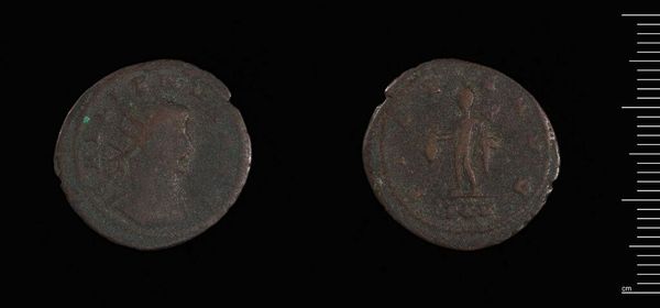 Editor: Here we have an Antoninianus of Numerian, a coin from Antioch. I'm struck by how such a small object could carry so much political weight. What can you tell me about its function? Curator: Coins such as these were integral to the projection of imperial power. Struck with the emperor's image, they served as propaganda, circulating his likeness and messages throughout the realm. Editor: Propaganda, even back then! So, its artistic merit was secondary to its political role? Curator: Not entirely. The artistry reinforces the message. The quality of the portrait, the chosen imagery on the reverse – all contributed to the emperor's desired persona. Editor: I see. It's fascinating to think of this little coin as a carefully crafted piece of political messaging. Curator: Exactly. And thinking about its creation and circulation really illuminates the dynamics of power in the Roman world.