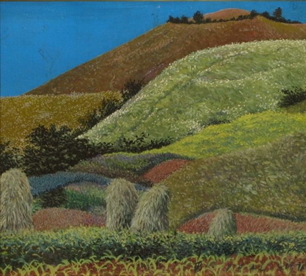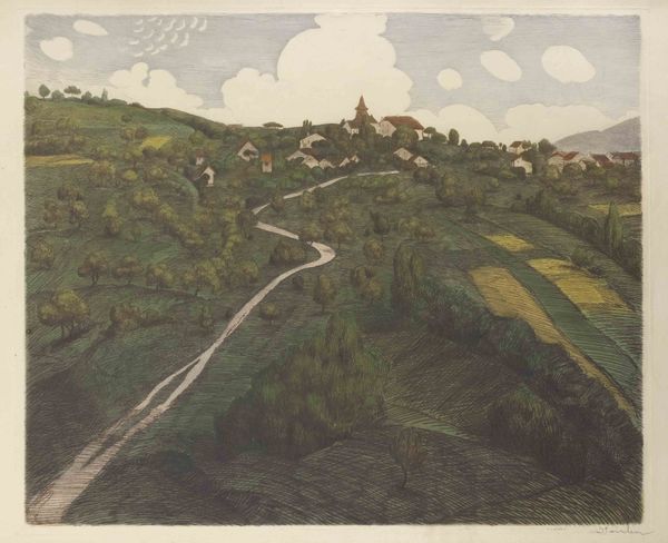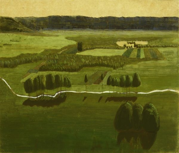 Editor: This is "Endless Vistas at Kishangarh" by Nihal Chand. The aerial perspective is fascinating. All these carefully arranged trees… it feels almost like a stage set. How do you read this image? Curator: The precise geometry is certainly striking. Consider the political context: such gardens were symbols of power and control. These weren't just places of leisure, but carefully constructed landscapes reflecting a ruler’s dominion. Editor: So the ordered nature reflects control? It feels idyllic, but also…imposed. Curator: Exactly! It's idyllic, but that idyll is carefully orchestrated. The painting becomes less about natural beauty and more about the ruler's ability to shape his world. Editor: I hadn’t considered it that way. It definitely changes how I see the artwork. Curator: Thinking about the intention behind the imagery and its purpose in its time really unlocks different layers of understanding.