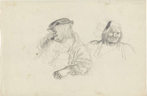 Henk Henriët sketched these two chaps with barets and a glass, sometime before 1945, using what looks like graphite and maybe some blue pencil. It's all about the fluidity of the line, a real sense of capturing a moment, a gesture. You can almost see him thinking, deciding where to put the next mark. Look at the way the lines dance around the figures, they’re not really filled in, but somehow that makes them more alive, more present. The surface is raw, immediate. You can see the artist's hand, the pressure of the pencil, the way the lines sometimes overlap and tangle. It's not about perfection, but about the energy of the moment. Check out how the head of the figure to the right is more defined than the rest. It reminds me of some of the early sketches by Van Gogh, this directness, this willingness to leave the process visible. Art isn't about answers, it's about the questions we ask along the way.