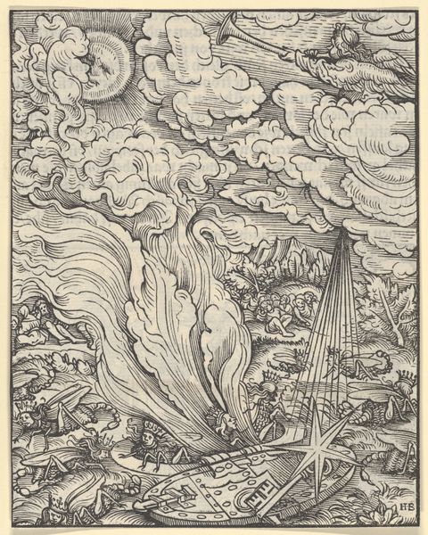 Thomas de Leu created this engraving of Locrian Ajax around the turn of the 17th century, as part of a series illustrating stories from ancient Greek writers. This particular scene captures the tragic downfall of Ajax, a figure caught between mortal ambition and divine retribution. De Leu was working in a period marked by religious and political upheaval, and an increased interest in classical literature. He uses his engraving to explore themes of human hubris and the consequences of defying the divine. Ajax, who in his arrogance dared to challenge the gods, is shown being punished by a figure riding an eagle. His ship is being destroyed by a huge wave. The image is laden with symbolism. Ajax's contorted body suggests the pain of defeat and the loss of control. De Leu seems interested in how identity and status are stripped away when facing forces beyond human control. It invites us to reflect on the precarious nature of human ambition and the humbling power of fate, connecting the emotional and personal dimensions of human experience with broader social and political themes.