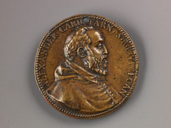 Curator: This handsome bronze relief, now held at The Art Institute of Chicago, is a commemorative medal created around 1882 by Bela Lyon Pratt to honor Henry Wadsworth Longfellow. Editor: My first thought is... wow, that bronze gives him a noble glow, almost as if Longfellow's words themselves have been burnished into metal. There's such a tangible presence in the depth of the relief. Curator: Absolutely. Medals like this were important forms of public art, offering a way to celebrate and circulate the image of significant figures, especially in the late 19th century, when Longfellow was basically America's poet laureate. This was just a few years after his death. Editor: It's lovely how the laurel wreath, partially framing him, subtly underscores that legacy. The texture around the face is so expressive, a wonderful interplay of light and shadow defining his thoughtful gaze and substantial beard. It feels more intimate than, say, a large public statue might. Curator: Definitely. It also touches upon the debate around public monuments: whether they represent all the people they aim to honor. In this case, a more modest scale seems more suited to commemorating the more subtle art of poetry. Medals like these also made art accessible. Editor: Yes. The way it captures the poet's wisdom—you almost feel he might start reciting "The Song of Hiawatha" if you stood here long enough. Curator: Perhaps, but think about what such celebratory portraits omit: What social and cultural conditions enable great writers like Longfellow? It's crucial to keep these questions in mind, even with pieces like these. Editor: Good point. Despite my swooning, history can be complicated, as we all know. It's the shadow play around his brow that gets me every time, though, like the weight of thoughts perfectly cast in bronze. Curator: Indeed, and now the medal itself becomes a cultural artifact, reminding us not only of Longfellow's verses but of how we chose to remember him at a specific point in time. Editor: So true, making it, itself, a kind of poetry etched in history. Curator: Precisely.