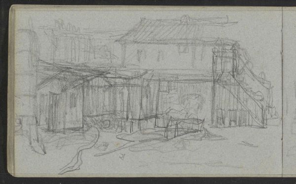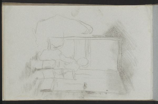 Editor: Here we have Matthijs Maris's "Interior with Wooden Beams and Workbench," a pencil drawing dating from around 1849 to 1917. The scene has a delicate, almost ghostly quality because of the medium, making the industrial space seem dreamlike. What can you tell us about the context of a drawing like this? Curator: Well, first off, it is worth noting that this piece is housed at the Rijksmuseum, indicating its significance in Dutch cultural heritage. But, I wonder, what do we make of its loose and undefined lines and the mundane subject, an interior of what seems like a workshop? Remember, the art world during Maris’s lifetime saw major shifts, from romanticism and realism towards impressionism. Editor: It feels very informal, like a snapshot of a workspace, not a grand statement. Curator: Exactly. Maris moved away from clear depictions, towards an almost anti-establishment aesthetic. This focus on ordinary subjects, depicting working conditions, moves the political power from the artwork, which would usually depict royalty or grandeur, to a study of place, almost like early conceptual art. How do you think its contemporary audience reacted? Editor: Maybe puzzled? It's certainly not what you'd expect if you were accustomed to art showcasing power and wealth. It seems revolutionary. Curator: And there’s the rub. It signals a shift away from academic norms toward democratizing art. Do you see any kind of commentary or story on working culture depicted, even with minimal details? Editor: Perhaps just a simple, unromantic portrayal of it? It's just… there. A space. Curator: And by merely being *there,* it gives dignity to labor, which, itself, could be considered revolutionary during an era where art primarily served elite interests. It is interesting how this simple scene invites us to rethink the social role and purpose of art. Editor: I see what you mean. I came in expecting something purely aesthetic, but it's charged with cultural significance. Thank you for sharing your expertise!