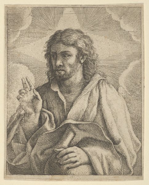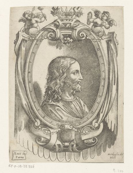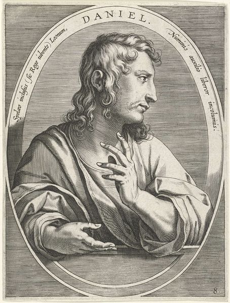 Cornelis Galle I created this engraving of Habakuk at an unknown date. The work presents a figure in an oval frame, his gaze lifted towards the heavens. The intricate linework defines not only the contours of his form but also the textures of his hair and drapery, creating a dynamic interplay of light and shadow. Note how the composition, framed within the oval, directs our focus upwards, guiding our eyes to follow Habakuk's line of sight. The text encircling the figure is not merely decorative; it inscribes him within a tradition of prophetic utterance. Galle uses the formal structure of the print to convey Habakuk’s spiritual elevation and the potency of his message. The texture achieved through Galle's engraving technique adds depth, but more importantly, it infuses the image with a sense of divine inspiration. This use of form and texture elevates the work beyond a simple portrait, imbuing it with layers of religious and artistic meaning.