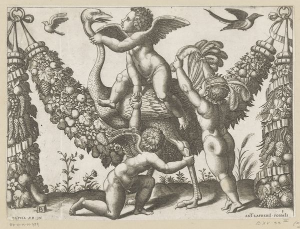 Pierre Brebiette created this engraving, Bacchanal, sometime between the late 16th and early 17th centuries. Brebiette was working during a time of significant religious and political upheaval in Europe, and his work reflects an interest in classical themes and mythology. With its figures cavorting and embracing in the waves, Bacchanal presents us with a scene of unrestrained pleasure, and, perhaps, a kind of pre-Christian freedom. The idealized bodies and erotic undertones speak to a certain fantasy, particularly in the historical context of the artist, as the Catholic Church would certainly disapprove of such openly sensual displays. Notice the inclusion of satyrs and sea creatures, which enhances the image’s fantastical elements. Consider how Brebiette's depiction of Bacchanal reflects a longing for an era of pagan freedom. It's an era unburdened by the moral constraints of his own time, while also showcasing the timeless human desire for pleasure and escape.