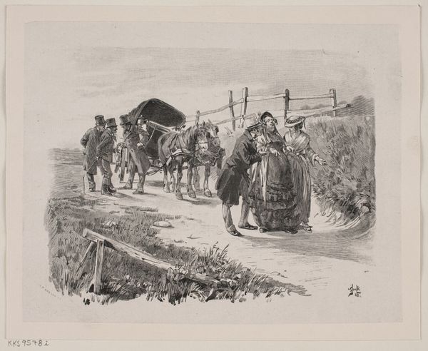 Théophile Alexandre Steinlen created this drawing, "Pour Les Refugies de la Meuse," using graphite on paper. The use of graphite allows for quick, fluid lines, capturing the immediacy of the scene, with the soft gray tones creating a sense of somberness. Steinlen's choice of this medium emphasizes the urgency of the subject matter: refugees fleeing the Meuse region. The sketch-like quality underscores the chaotic reality of displacement, the fast and often brutal upheaval of war. We can see that the artist is not interested in portraying the refugees as perfect, but rather as human beings caught in a difficult situation. The marks are raw, scratchy, and vulnerable, which are qualities of the materials and processes utilized. The work's social significance lies in its depiction of human suffering during wartime. Steinlen likely created this drawing with the intention of raising awareness and support for the refugees, using his artistic skill to engage with pressing social issues of labor, politics, and consumption, as well as empathy. This piece challenges traditional distinctions between fine art and craft, as it serves a practical purpose while demonstrating artistic skill.