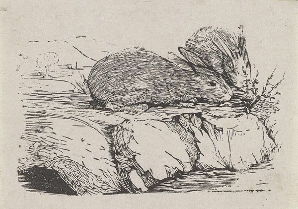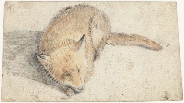 Editor: Here we have "A mouse with a peanut" in watercolor by Albrecht Anker. I find the mouse both adorable and somehow… melancholy? Like it's having a very quiet moment with its snack. What do you see in this piece? Curator: It whispers of cozy domesticity, doesn't it? This tiny drama unfolds like a scene from a Beatrix Potter book gone slightly… contemplative. Look at how Anker captures the textures, the soft fur, the rough shells. You can almost feel the dust motes dancing in a sunbeam, though the light itself is quite subdued. Do you sense that play between realism and sentimentality? Editor: Absolutely. The details are realistic, but there's a definite tenderness in how he depicts the mouse. Almost anthropomorphic. Curator: Precisely! Anker was a master of genre painting, capturing these quiet moments of everyday life, and imbuing them with a sense of gentle humor and poignant observation. Makes you wonder what else the mouse gets up to in its daily life? Editor: It makes you think about the hidden lives all around us. I hadn't thought about the genre implications! It’s funny, it elevates this little rodent vignette to something almost… grand. Curator: It's a testament to Anker’s skill. He turns the mundane into the magical, inviting us to see the world, and even a tiny mouse, with fresh eyes. Editor: Well, now I see more than just a cute mouse. Thanks! Curator: My pleasure. Art is just opening your eyes and heart and finding wonder in expected places.