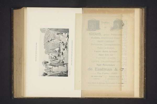 Curator: Let's explore this photograph, "Huis en een waterpartij in een landelijke omgeving", which translates to "House and water feature in a rural setting." It's attributed to an anonymous artist, dating to before 1895, and was realized as a collotype print. Editor: My initial impression is one of serene quietude, it’s incredibly tranquil. The reflections on the water's surface are soft, the whole image feels very delicate. Almost dreamlike, but quite crisp in its rendering. Curator: Collotype printing was prized for its tonal range and ability to reproduce photographic detail, even as it existed along mass produced imagery and text, as we can clearly see in this bound copy. In this case, it was commonly used for illustrating publications, effectively democratizing access to images, thus making art available outside of gallery walls. Editor: Yes, it underscores how images became integrated into everyday life and accessible beyond the elite classes. The materiality is so fascinating to me here; looking at how the ink lies on the page, how it renders the specific textures of foliage, the stone on that humble house, that to me speaks volumes. I see both art and documentation working in tandem here. Curator: It absolutely points to the changing role of photography during this period, shifting from being purely documentary to encompassing artistic expression. This also illustrates the tension that rises around this same period in fine arts where questions emerge concerning what kind of images are worth disseminating. Editor: Exactly, it is also challenging established boundaries of what counts as art by documenting modest everyday scenes versus grand, historical, or mythological subject matter. And I wonder about labor--consider the processes behind capturing the initial image, preparing the printing plate, and running the presses… each impression required skilled labor. Curator: Indeed. Viewing this anonymous print through the lens of the broader photographic context provides insights into the technology, society, and aesthetics of its time. It allows us to ask about the historical importance of the imagery being distributed as a physical print, an aesthetic decision as much as a functional one, inside of a bound publication. Editor: I agree. Thinking about it, what appears as a calm scene is really this whole intersection of materials, technologies, social conditions. And I think what draws me to it, too, is its subtle assertion of value, a sort of claim for dignity through representation. It urges us to really value these everyday spaces.