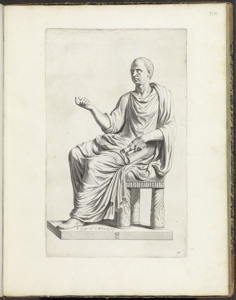 This engraving of a statue of Aesculapius was made by Luca Ciamberlano in the early 17th century. As the Roman god of medicine and healing, Aesculapius is depicted in the classical style, draped in robes with a serpent entwined around a staff. In the context of 17th-century Europe, and the rise of scientific rationalism, the image of Aesculapius references the long history of medicine, linking ancient knowledge to contemporary practice. Art academies of the period emphasized classical forms as models of aesthetic and intellectual achievement. The engraving might reflect an emerging interest in the collection and cataloging of classical antiquities, part of a broader project of ordering and classifying the natural world. Historians can examine period texts on medicine, museum collection records, and the biographies of artists and patrons, to better understand the cultural meanings embedded in this image. By studying the historical context, we recognize that even seemingly straightforward depictions of classical figures are deeply embedded in the social and institutional histories of their own time.