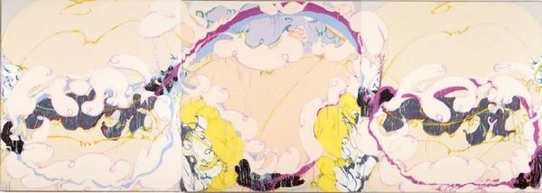 Editor: Norman Bluhm’s *Easter Morning*, painted in 1979, is a riot of mixed media, with what looks like acrylic paint dominating the canvas. I’m immediately struck by how visceral it feels; the large scale and the almost aggressive application of paint makes it feel so immediate. What do you see in this piece? Curator: For me, *Easter Morning* is really about the materiality of painting itself. Look at how Bluhm uses acrylic to build up these dense, almost fleshy forms. Consider the labor involved, the physical act of applying layer upon layer. He’s challenging the idea of painting as simply representation. It becomes an object, a record of its own making. What do you think the scale contributes? Editor: I think the size intensifies that feeling, it feels like a real physical presence. Are you suggesting the "Easter Morning" title might even be ironic, contrasting such violent painting with a celebration of rebirth? Curator: Perhaps. It forces us to think about the consumption of art too. Acrylic paint became increasingly available and cheap, enabling larger works. But this also democratizes artistic practice, opening avenues to new types of artists and studios, outside of traditional craft boundaries. This is, perhaps, rebirth of artistic materials! What implications could this hold for art world hierarchy? Editor: It's interesting to think of abstract expressionism in terms of material availability. I usually consider it a product of individual genius, rather than affordable paint. Curator: Exactly! By thinking about materiality and modes of production, it really opens new dialogues and interpretations. This moves away from the idea that it’s the artwork from a singular creative mind. Editor: That’s a completely new way of approaching abstract art for me. Seeing the creation and the means as fundamental, instead of the artist’s emotion. Thanks! Curator: Indeed. The point isn't to replace the artistic agency, but rather it can change our thinking about how to connect process, objecthood, and ultimately the artistic value ascribed to those efforts.