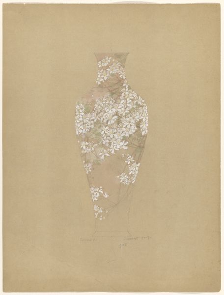 Editor: Okay, next up we have "Cravat and Box" made sometime between 1935 and 1942 by William Spiecker, using watercolor and pencil on paper. There's something so delicate about the way the cravat is rendered, almost ethereal. What do you make of this still life? Curator: Oh, this piece whispers of quiet contemplation to me. The floral cravat, suspended in this cream space, evokes a bygone era of gentility, of taking precious time to consider aesthetics and beauty in the everyday. What stories could this discarded finery tell, if it could only speak? Editor: I didn’t even think about a narrative, but now I’m curious, too. And the box at the bottom – why is it so faint, like a half-formed thought? Curator: Yes! The box below is drawn in pencil with sparse detail, adding to the mystery of the cravat. It feels like a faded memory or perhaps a suggestion that beauty may fade, but leaves an impression. A shadow self…Do you get that feeling of contrasting impermanence versus structure? Editor: I think I do. I was so focused on the visual, I didn’t see that deeper contrast. The cravat, full of life in its colors, against the almost skeletal outline of the box…It’s definitely thought-provoking. Curator: Exactly. Maybe it’s a tiny meditation on life's fleeting nature, tucked into a seemingly simple composition? Each delicate brushstroke and faint line contributes to this silent dialogue. Don’t you feel the impulse to invent histories for each tiny element within the whole picture? Editor: Absolutely. I'm definitely seeing this in a new light now! It’s like the artwork invites you to pause and dream. Curator: Isn't it wonderful how a simple composition can ignite such curiosity? It's a testament to Spiecker's artistry and vision.