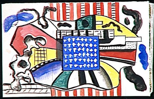 Curator: Red Grooms created this piece, "Sunday Funnies," in 1985. It's a vibrant mixed-media work that encapsulates so much of American culture in the late 20th century. What are your immediate thoughts? Editor: My eye goes right to the texture. You can see the layered paint, the deliberate roughness. It isn’t trying to be sleek. It screams process; you see the artist’s hand in every bulging form and jagged line. Curator: Precisely. The subject, a bowling champion absorbed in the Sunday comics amidst a chaotic cityscape, reflects Grooms’ interest in everyday life and mass culture. The comic strips, the vintage car—it’s a veritable archive of cultural references. And don't miss the police! It speaks to the relationship between the city's characters and authority. Editor: The choice of materials speaks volumes, too. The bold paints, probably chosen for their accessibility, tie into this almost populist feel of the piece. Grooms seems interested in how the everyday material world creates art for ordinary consumption. It’s far removed from marble busts and grand historical canvases, isn’t it? Curator: Indeed. And notice how he elevates what could be considered "low art" – comics and street scenes – by presenting it with such dynamic energy and skill. It's Pop Art with a healthy dose of social commentary. There's an implied critique of urban life, a questioning of cultural icons. It acknowledges the importance of popular narratives. Editor: He definitely brings a painterly eye to seemingly mundane materials and situations. It highlights how the process of production impacts how we read narrative in these everyday encounters. What’s more striking is Grooms' celebration of color and texture to highlight the value of such material production to culture and society. Curator: And the fact that it feels very immediate—a snapshot in time—gives the art such strong historical value in assessing culture. Editor: Definitely food for thought; all this layering adds weight to the artwork's many points.