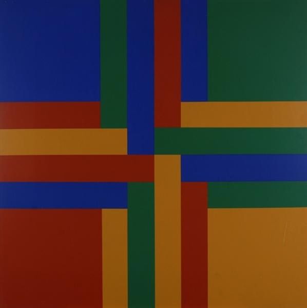 Editor: Here we have "Rote Dominante," a 1957 painting by Camille Graeser, done in acrylic paint. The geometric composition feels quite controlled, and almost like a study in colour relationships. How would you interpret this piece? Curator: The controlled feel isn't accidental. Consider Graeser's commitment to Concrete Art. For him, painting was a meticulous construction. Acrylic paint itself becomes central. It allows for a smooth, uniform surface, eliminating visible brushstrokes and any sense of the artist's hand or spontaneous gesture. We see the rejection of gestural abstraction, popular at the time. Editor: So the acrylic allows for a mass-produced feel, which moves away from individual expression? Curator: Precisely. Look at how he uses this medium. It rejects the romantic idea of the artist as a tormented genius, sweating over the canvas. Instead, there is a focus on a methodical process, the calculated arrangement of colours and shapes according to pre-determined rules. We have to think about art-making as labor, almost an industrial process where paint, surface and careful construction replace traditional ideas of artistic genius. Editor: It's fascinating how the choice of material and process redefines what we consider 'art'. What was the intended function of this art? Curator: That is something worth asking. By reducing painting to its material elements and geometric arrangements, Concrete Art proposed a kind of universal visual language. However, did that become another commodity? Graeser worked in advertising before becoming a full-time artist. His formal vocabulary seems very appropriate for modernist design principles as well. Editor: So the painting almost occupies an ambiguous position, critiquing and feeding into consumerism simultaneously. I'll definitely think more about materials as choices with their own social contexts. Curator: Agreed. The social implications and labor put into materials matter!