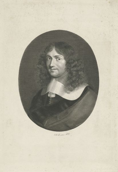 Pieter Romans created this portrait of a young man using etching techniques sometime around the 1830s. Consider the subject’s attire, particularly the broad, white collar. This feature echoes through art history, reminiscent of the ruffs worn during the Renaissance, symbols of status and refinement. Similarly, observe the subject’s long hair. Across cultures, hair has been a potent symbol—of virility, freedom, or rebellion. Think of the flowing locks in Romantic portraits, or the carefully coiffed styles of earlier aristocratic portraits. Each expresses a unique psychological assertion. Notice how these visual motifs resurface in various epochs, each time imbued with new significance. These repetitions aren't mere coincidences, they are echoes of shared human experiences, desires, and anxieties, constantly reinterpreted.