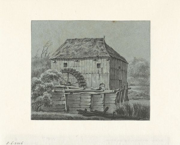 Curator: Ah, I love the subtle textures in this pencil drawing, entitled "Houten pomp in vierkante put," or "Wooden Pump in Square Well," by Joannes Bemme. It resides here at the Rijksmuseum and dates from 1809 to 1841. Editor: It’s strange, isn’t it? Utilitarian but also… forlorn. The rendering is precise, almost architectural, yet the whole scene has this wistful quality. I’m picturing a silent, sun-drenched afternoon, everything a bit bleached and still. Curator: What strikes me is the depiction of labor. Here's this beautifully crafted wooden pump, central to daily life. The pencil work highlights the artisanal qualities, emphasizing the skill and effort required for water access in a pre-industrial context. We're shown the raw, practical aspects of 19th-century rural life. Editor: Right. The scene depicts objects: pump, buckets, well – almost ordinary in and of themselves, but imbued with a palpable melancholy. There’s even this empty, discarded metal bucket beside the well... Like some long forgotten memory. Curator: We can also talk about how this represents an interesting shift in artistic practice. By the 19th century, with industrialization taking hold, subjects like these became increasingly idealized in contrast to the lived experiences of those producing these types of items. There's this implicit tension that adds a richness. Editor: Mmm. Almost feels like a lament for a way of life slipping away. All those hard-won skills slowly becoming redundant. This might be the melancholy of the water pump's creator seeping into the artwork somehow, or maybe my own projecting. Art: is it empathy or solipsism in disguise? Curator: A thought-provoking reflection indeed. Editor: Makes you think, eh? Thanks, well. Thanks, Bemme.
