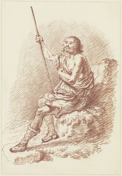 This etching, "Begging Blind Man", was made by Carl Friedrich Holtzmann around the turn of the 18th century. The medium here is modest: etching, a printmaking technique where acid is used to corrode the unprotected parts of a metal surface to create a design. It's a process that allows for detailed, reproducible imagery, but it also speaks to the economic realities of the time. Etchings like these were more accessible than unique paintings, circulating ideas and images amongst a broader public. Notice how Holtzmann uses line and shadow to convey texture and depth. The beggar's tattered clothes, the rough surface of the stone he sits upon, and the man’s weathered skin, all rendered through the careful application of acid to metal. The act of etching itself, with its reliance on skilled labor and reproducible techniques, reflects the changing social and economic landscape of the 18th century. It moves away from unique craftsmanship, and towards a system of mass production and consumption. Appreciating the material and processes behind this image gives us a richer understanding of its historical and cultural significance.
