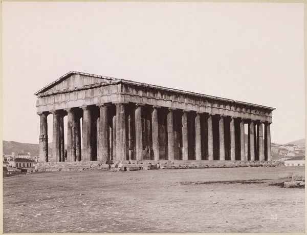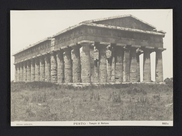 Editor: Here we have Giorgio Sommer's "Tempio di Nettuno" from the 19th century, captured in an albumen print. It has this wonderfully somber, classical feel... What do you see in this piece, especially considering its historical context? Curator: It’s compelling, isn’t it? Sommer’s image captures the Temple of Neptune at a time when photography was becoming a tool for documenting and, arguably, possessing the past. Consider the act of photographing such a monument. It's not merely an artistic endeavor; it's also a social and political one. These images circulated widely, shaping perceptions of ancient Italy, particularly among educated elites who often embarked on Grand Tours. What purpose do you think images like this served back then? Editor: I guess it was a way to bring the grandeur of these ancient sites to people who couldn't travel. Almost like visual tourism, reinforcing a certain image of Italy's glorious past? Curator: Precisely! And that "glorious past" was strategically framed. The focus on classical ruins speaks to a specific desire to connect with a perceived golden age, often overlooking the complexities of Italian history. How do you think the composition – the angle, the light – contributes to that idealization? Editor: The low angle makes the temple feel imposing, and the soft light kind of romanticizes the decay, lending this feeling of awe but also melancholy, you know? It’s interesting to think about the power of a single image to shape understanding. Curator: Absolutely. It’s a curated view of history, impacting how we perceive not just the monument itself, but also the cultures and powers that have intersected with it over centuries. Looking at it, one is left wondering what other histories are excluded through this romantic perspective. Editor: Wow, I hadn't considered that it's really framing history. I'll definitely think about the politics of images and their cultural influence from now on. Thanks! Curator: My pleasure! I’m glad I could shed some light on those dynamics.
