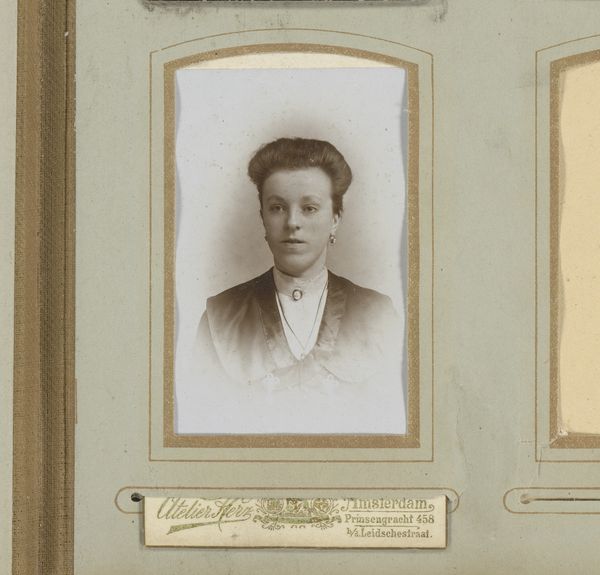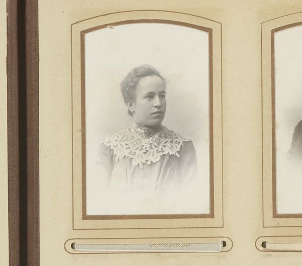 Dirk Pander's "Portret van een vrouw" is a photograph capturing a moment, a face, and perhaps a story, all framed within the conventions of its time. Looking at this piece, I'm struck by how the photographic process itself becomes a kind of collaboration with time. There’s a softness to the image, almost like a watercolor, that defies the sharp precision we often associate with photography today. The subdued palette enhances this effect, drawing us into a world of subtle tones and gentle gradations. My eye keeps returning to the woman's dress. The details are softly rendered, the lace is palpable. This area, in particular, reminds me of the portraiture of someone like Manet, who also captured the essence of his sitters with a similar blend of detachment and intimacy. Of course, photography is always an invitation for interpretation, it is a medium that embraces ambiguity and multiple interpretations over fixed meanings.