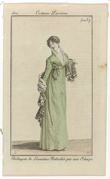Pierre Charles Baquoy created this print titled ‘Journal des Dames et des Modes, Costume Parisien’ in 1803. It offers us a glimpse into the sartorial expectations and aspirations of women in post-revolutionary France. Fashion plates like this one weren’t just about clothes; they were about constructing and communicating social identity. The high-waisted silhouette and relatively simple design reflect a shift away from the aristocratic opulence of the pre-revolution era, towards a more streamlined, almost classical aesthetic. However, this ‘simplicity’ was still a carefully constructed performance of status. Consider the fabric, likely expensive, and the impracticality of the long train, which speaks to a life of leisure and privilege. There's a tension here: The revolution sought to erase markers of class, yet fashion continued to operate as a signifier of social standing. What does it mean to desire fashion? What emotional needs do these garments fulfill, and what social messages do they send? This image captures a moment in time when clothing was deeply intertwined with the negotiation of identity and social power.
