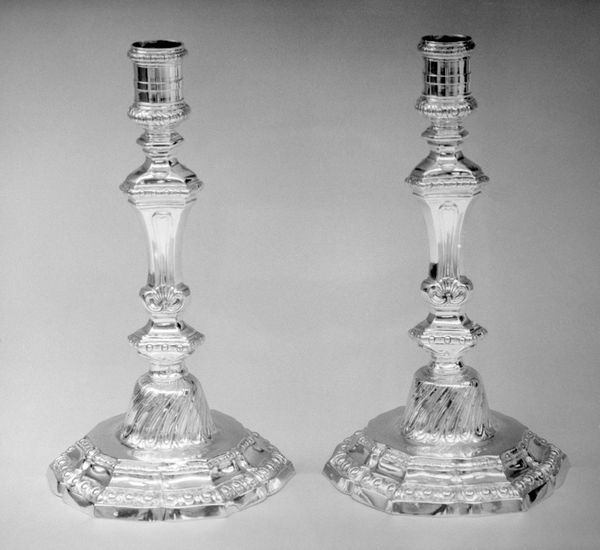 These candlesticks were made by Gilles-Claude Gouel, a master silversmith in 18th-century France. Silver has always been a precious material, valued for its beauty and malleability. Consider the techniques Gouel would have used to bring these objects to life. Silversmiths like Gouel employed a range of skills, including casting, hammering, and chasing, to shape the metal into the desired form. The candlesticks would have begun as ingots of raw silver, refined and alloyed for workability. The various components – the base, stem, and candle cup – were likely formed separately and then soldered together with minute precision. Now, think about the social context. These candlesticks speak volumes about the rituals, class and consumption of the period. Silver objects like these were luxury items, adorning the tables of the wealthy elite. Their gleaming surfaces would have reflected candlelight, creating an atmosphere of refinement and extravagance. By focusing on materials, making, and context, we can gain a deeper appreciation for the cultural significance of these everyday items, transcending the traditional boundaries between fine art and craft.