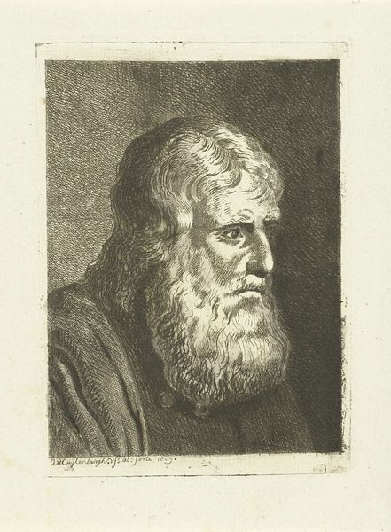 Editor: This is a print of Socrates by Jan Faber the Younger. I find the detailed rendering of the beard fascinating. How do you see the materials used impacting the final artwork? Curator: As a materialist, I'm drawn to the printing process itself. Consider the labor involved in creating the plate, the paper's sourcing, and the consumption patterns of such images. How does mass production change the status of an image of Socrates? Editor: That's interesting. It makes you consider the image’s wider reach. Curator: Exactly. It makes you think about the role of distribution in shaping cultural understanding. Editor: This gives me a new perspective on the work and its social implications. Curator: Precisely. Thinking about how art is made and consumed adds depth to our understanding.